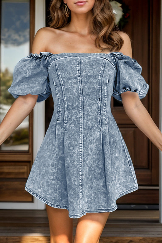 Ruched Zip Up Spaghetti Strap Denim Dress