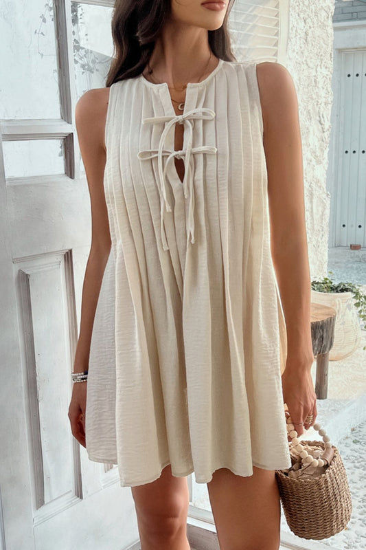 Button Front Chest Pockets Sleeveless Slim Mini Denim Dress