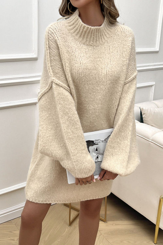 Ribbed Tied Hooded Long Sleeve Mini Sweater Dress