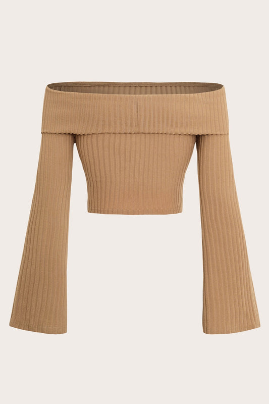 Ribbed Off-Shoulder Long Sleeve Top