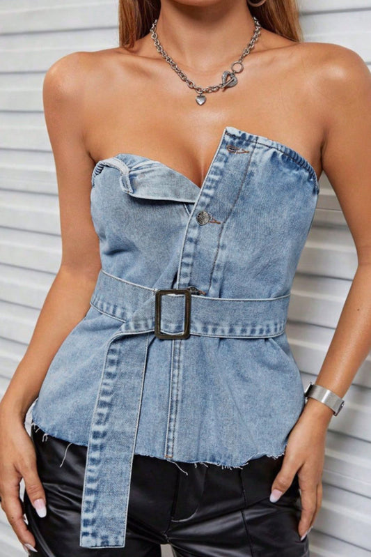Frayed Hem Button Detail Tube Top