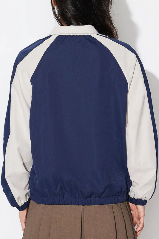 Contrast Zip Up Collared Neck Long Sleeve Jacket
