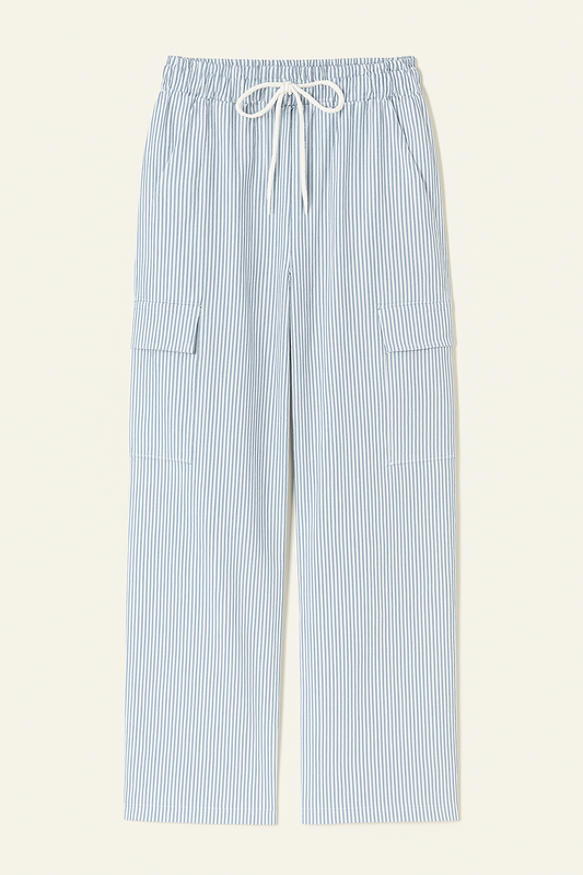 Drawstring Striped Wide Leg Cargo Pants
