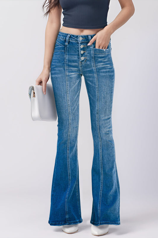 Button Fly Bootcut Jeans with Pockets