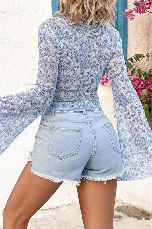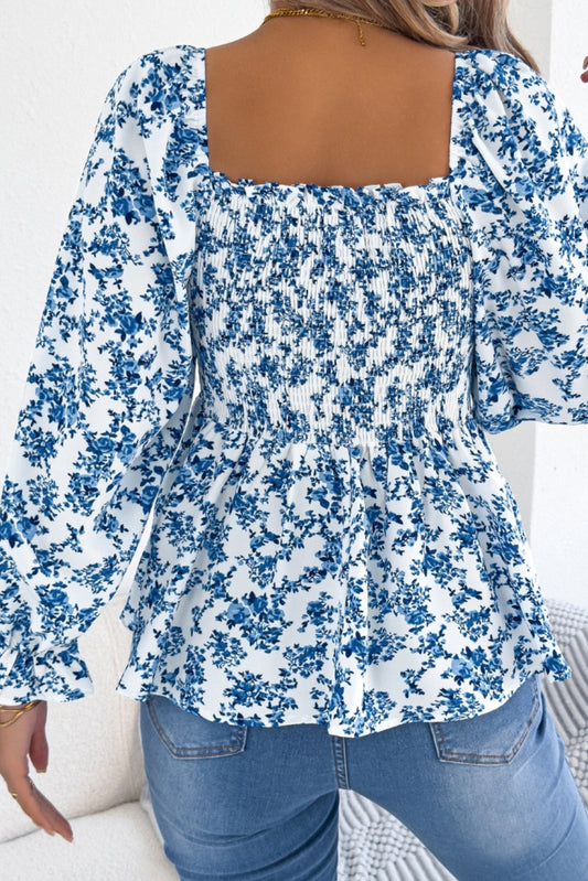 Floral Square Neck Flounce Sleeve Blouse