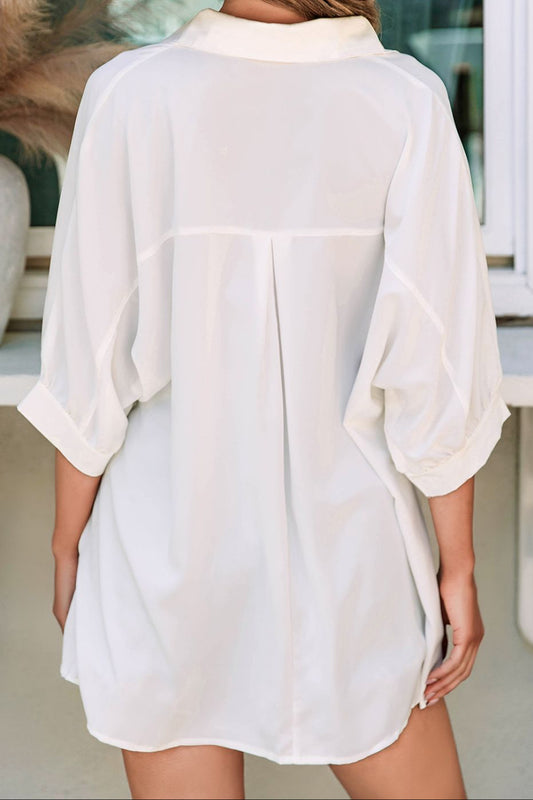 Collared Neck Three-Quarter Sleeve Shirt