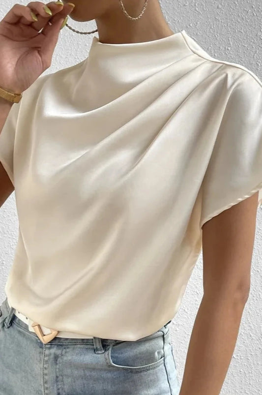 Mock Neck Short Sleeve Blouse