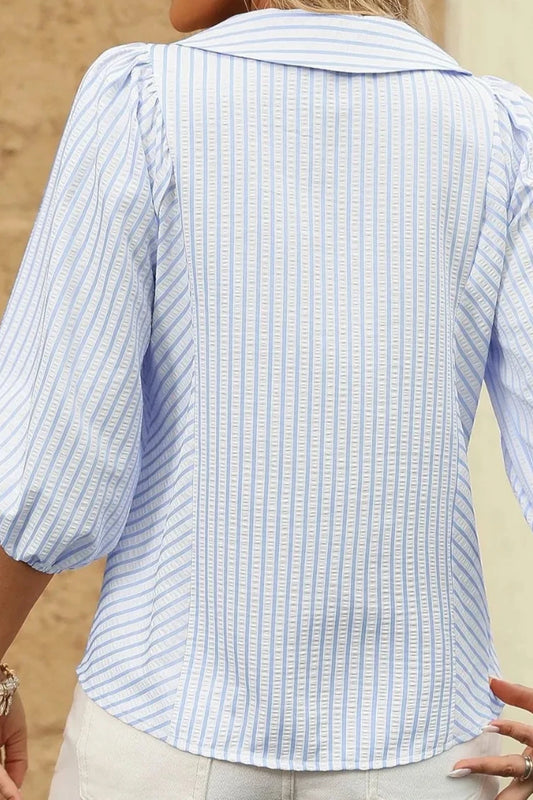 Striped Button Down 3/4 Sleeve Shirt