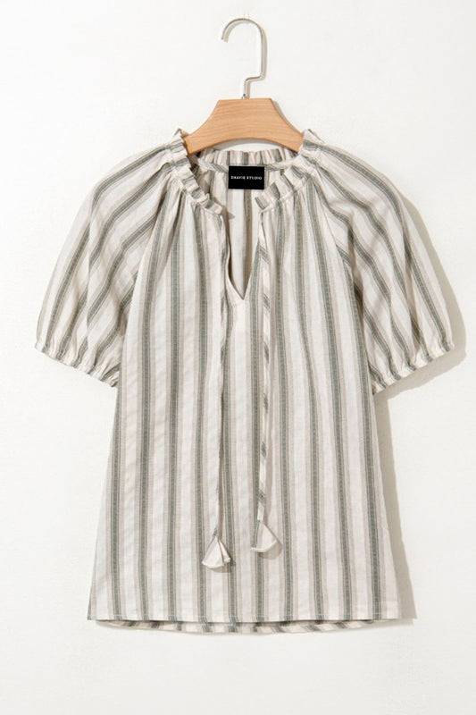 Drawstring Striped Half Sleeve Blouse