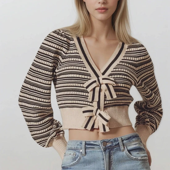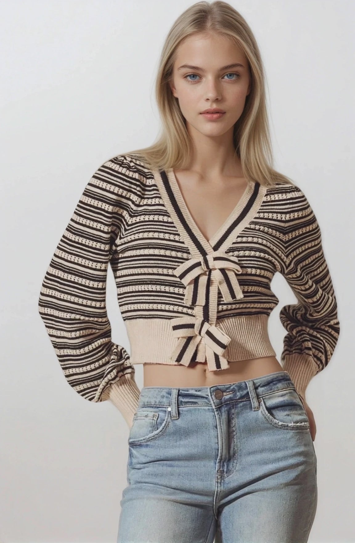 Tie Straps Wave Stripes Textured Eyelet Knitted Vest
