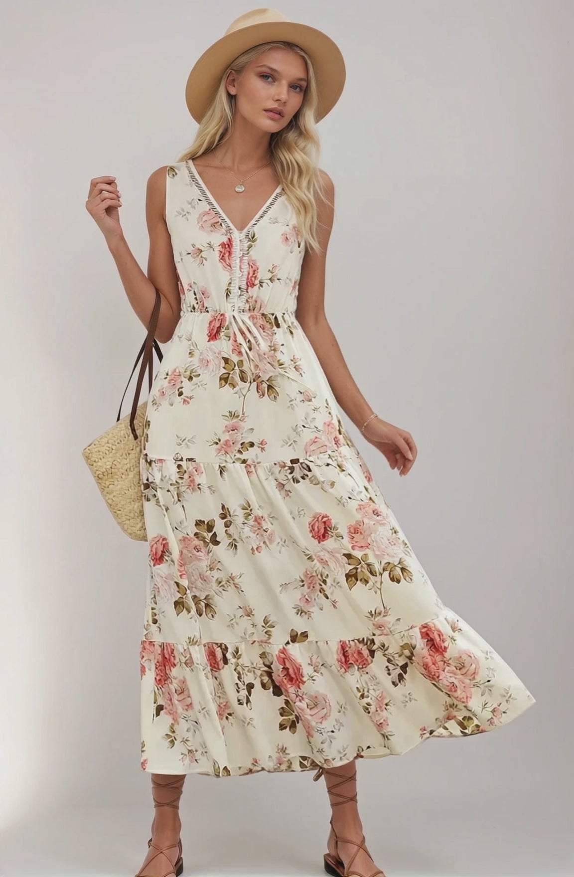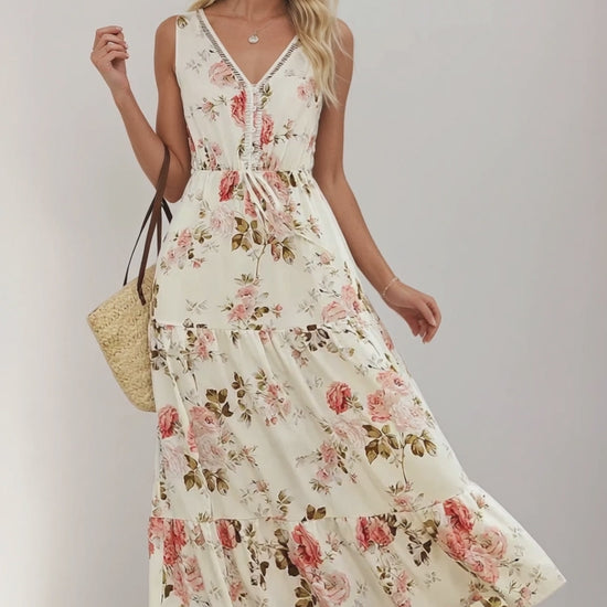 Printed Ruffled Hem V-Neck Sleeveless Dress