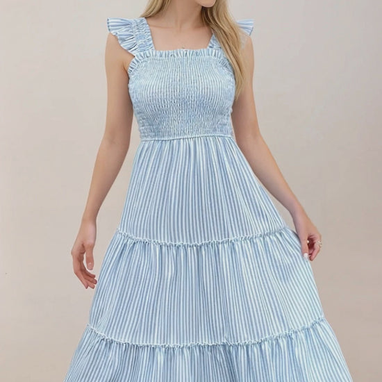 Smocked Striped Wide Striped Midi Dress